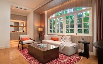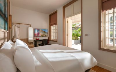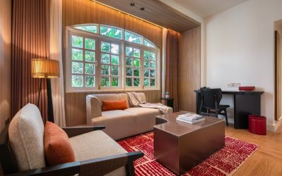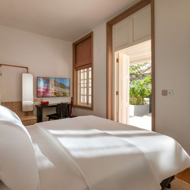 The hotel’s 96 rooms have been reconfigured into 78 larger, more spacious rooms by combining smaller units. The layout is divided into two main areas; the front main building along Jalan Burmah houses the elegant lobby, dining and commercial spaces. The rear are the guest rooms where one wing opens onto a tranquil swimming pool and garden, while the other has rooms surround peaceful internal courtyards, offering guests a serene escape from the bustling city.
